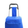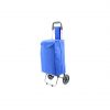 Carro de compra plegable en resistente poliéster 600D, en variada gama de vivos colores. Con asas reforzadas y cuerpo metálico tubular. Además incluye bolsillo con cremallera en la parte posterior y soportes con goma de protección. Por lo general marcaje en tinta.