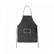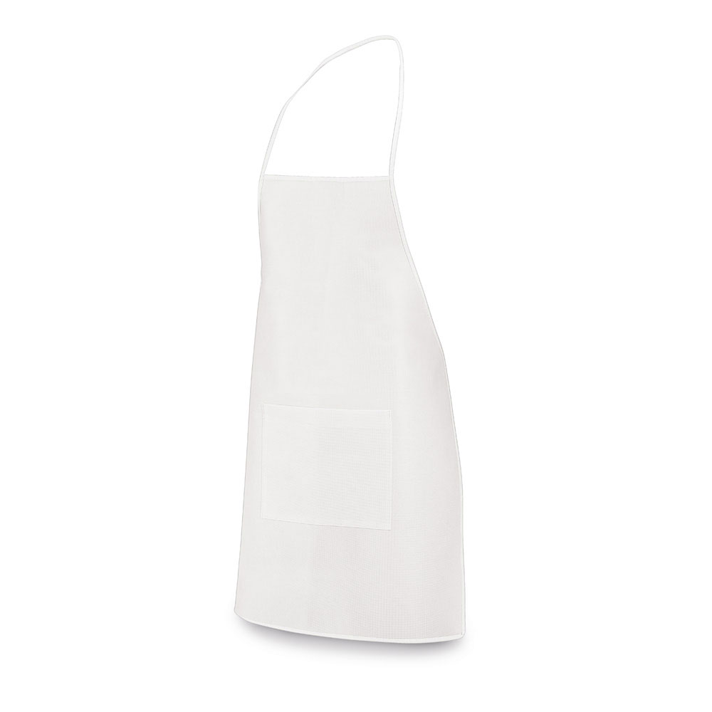 Delantal económico en material Non-woven de 80 gr./m². También incluye bolsillo en la parte frontal y cintas para ajustarlo a la cintura. Por lo general marcaje en tinta.