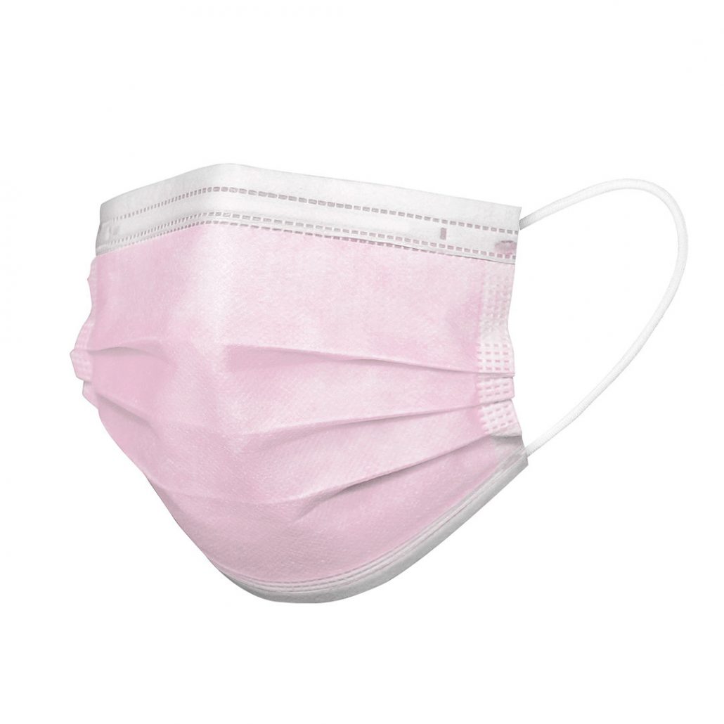 Mascarilla higiénica de triple capa de acabado termo-sellado, con elásticos de fijación y pinza ajustable para la nariz. Marcada en una tinta.