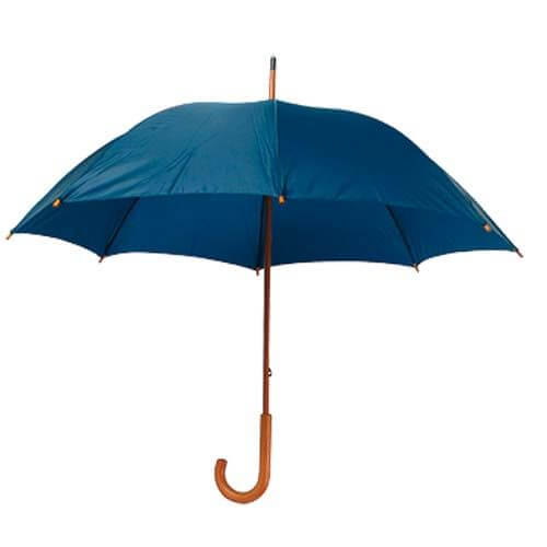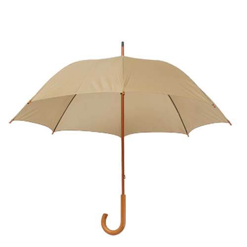 Paraguas clásico personalizado, con mango curvo y confeccionado en color madera natural. En primer lugar es un paraguas de apertura manual con un diámetro de 105 cm, con varillas metálicas en color negro y cierre de velcro. Confeccionado en material poliéster, por lo que nos brinda buena resistencia y durabilidad. Además tiene 8 paneles y está disponible en una variada gama de colores.