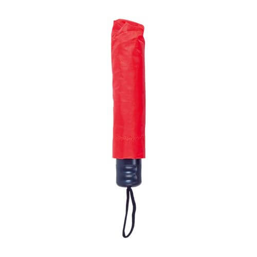 Paraguas mini con publicidad. Primero, disponible en variada gama de colores, plegable de 8 paneles, con 95 cm de diámetro, de apertura manual y hecho con material de resistente poliéster. Además tiene cierre de velcro, cinta de transporte en el mango y varillas metálicas de color negro. Presentado en funda individual a juego.