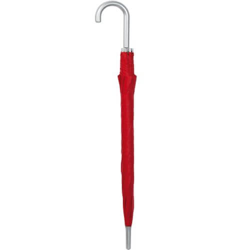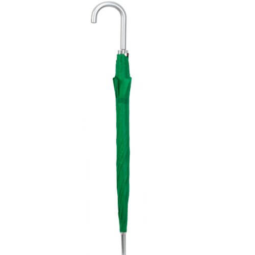 Paraguas publicitario de 8 paneles. Lo primero destacar que cuenta con apertura automática y está hecho con resistente material de poliéster. También dispone de varillas metálicas de color plateado y un suave mango curvado, cierre de velcro y con apertura de 105 cm de diámetro.