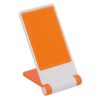 Soporte móvil personalizado plegable para smartphone. en primer lugar el soporte tiene una superficie adherente en original diseño bicolor, además su base es antideslizante y soporte a juego.
