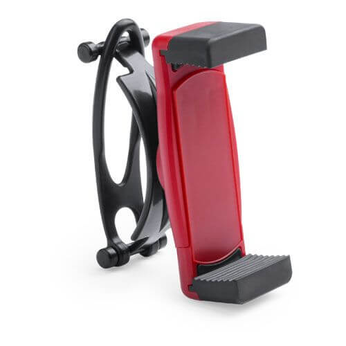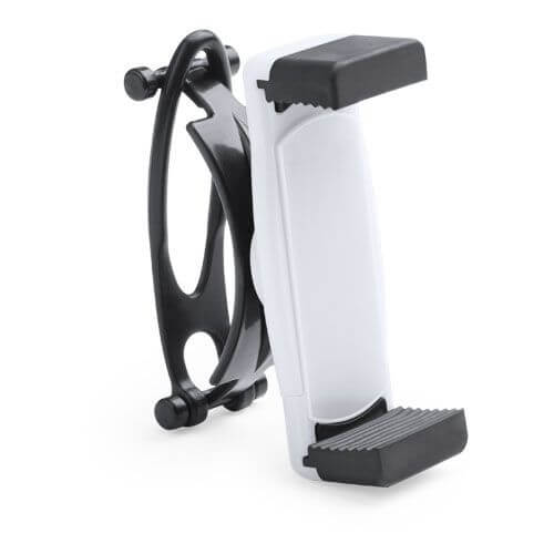 Soporte para smartphone de manillar giratorio 360º, en desenfadado diseño bicolor y amplia gama de colores. Con sólida goma de fijación y sistema de almohadillas en el soporte para así ofrecer un óptimo ajuste y protección del smartphone. Ideal para el coche o para una bicicleta. Por lo general marcaje en tinta.