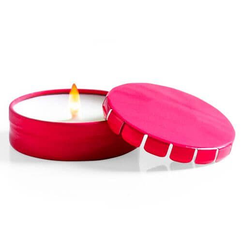 Vela aromática personalizada con agradable fragancia de vainilla. En primer lugar viene presentada en original tarro metálico con cierre de clip, además de estar en variada gama de vivos colores. Por otro lado a tener en cuenta que es un original regalo el cual puede ser impreso con el logotipo publicitario, regalando así un buen y lindo recuerdo.